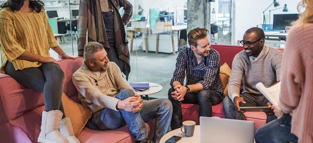 Onward Search creative staffing and talent solutions employees smiling and discussing join our team